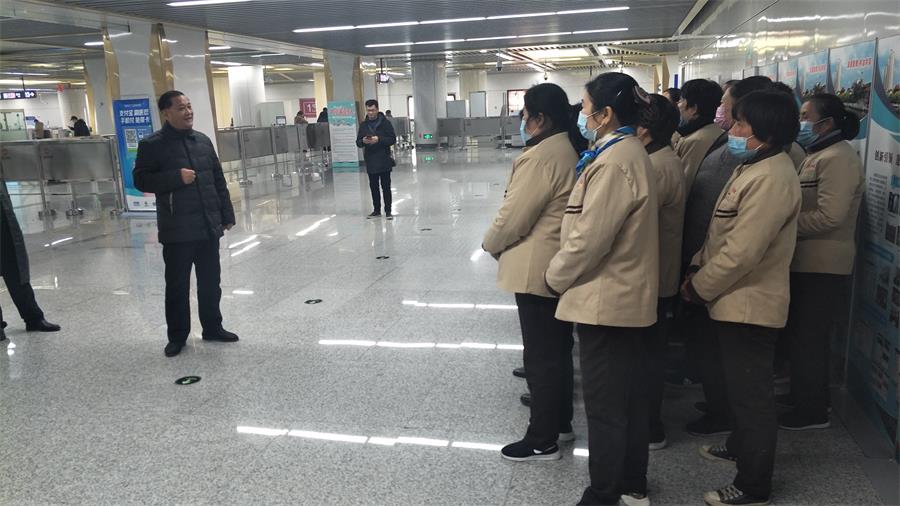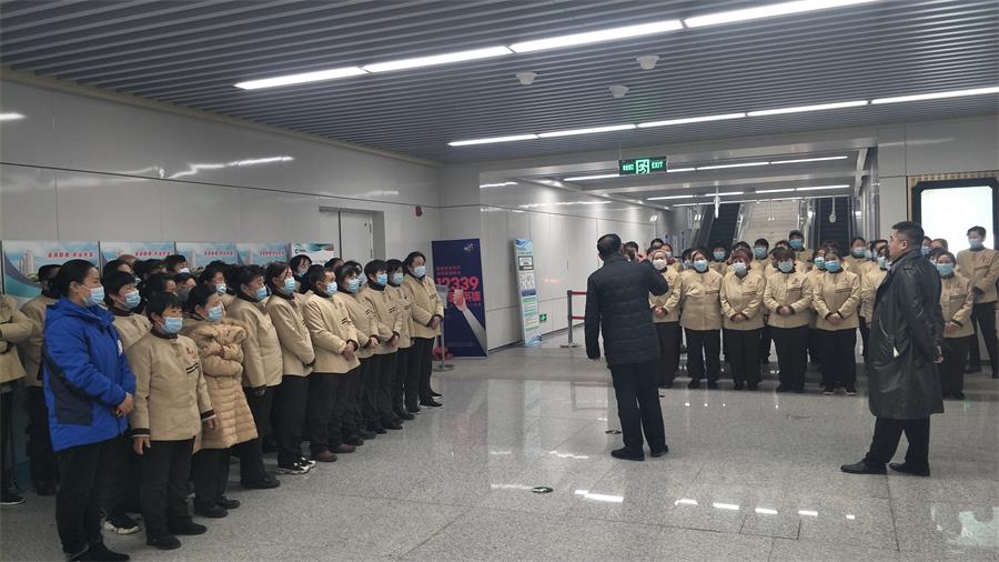 2020年12月22日下午2:30分,徐州宝润物业管理有限公司地铁1号、2号线项目部全体员工在彭城广场换乘站,由项目部负责人主持召开关于两节前的重点工作会议。
